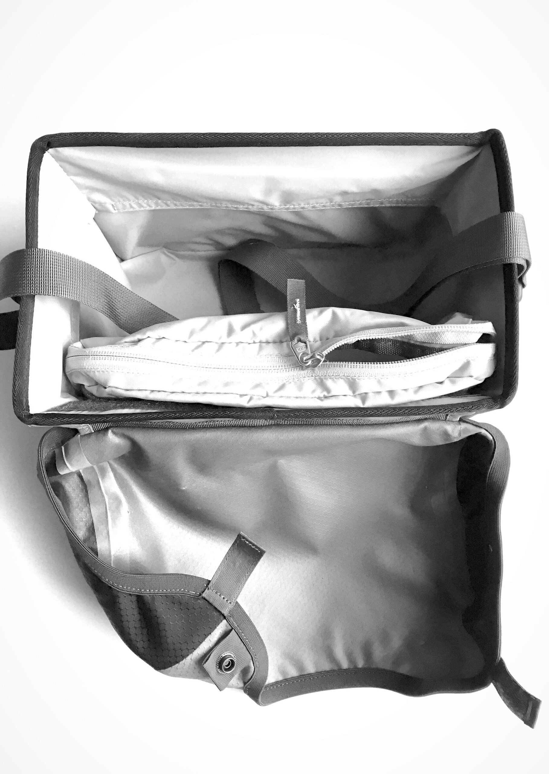 Med aftagelig skulderrem og lynlås i tasken